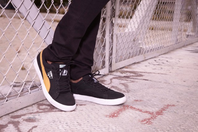 Undefeated has teamed up with PUMA once again to create a shoe of simplicity, yet with a sense of casual style. Releasing tomorrow, June 10th the Cali Clyde Canvas sneakers will be the perfect shoe to wear with anything during the summer. The colorway of the actually shoe and the formstripe gives the shoe a little “pazazz” and doesnt make it look too simple. The whole thought process behind the shoe makes it a shoe you would want to purchase to go with any look youre going for, its versatility is what makes this shoe powerful!