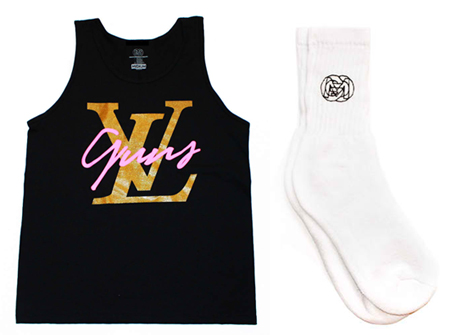 This summer Guns & Crayons deiced to surprise us and come out of the closet with their highly Favorited tank & a pair of socks with the G&CM logo en-printed on the tops of the socks. The tank as you can see above only comes in black and it has the “LV” design made up of gold foil and the words “Guns” is a pink italicized type of design. You can purchase both of these items HERE