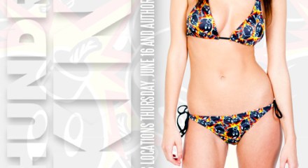 FJune 16th, The Hundreds bikini will go out on the market, you can purchase em at some of the authorized retailers this week on Thursday. The design is the original ticking bomb logo’.