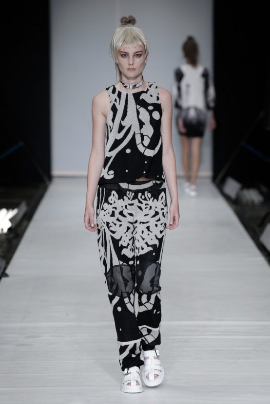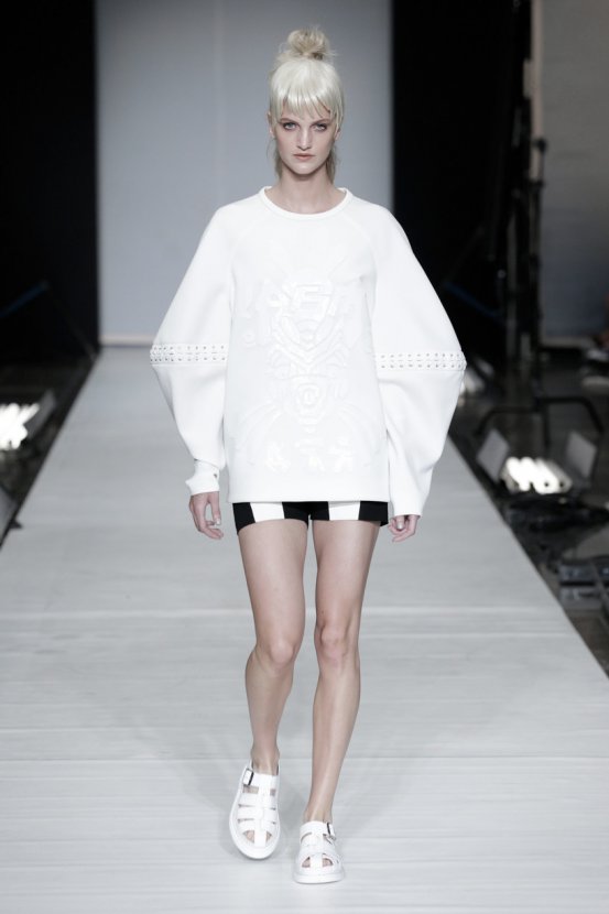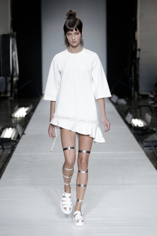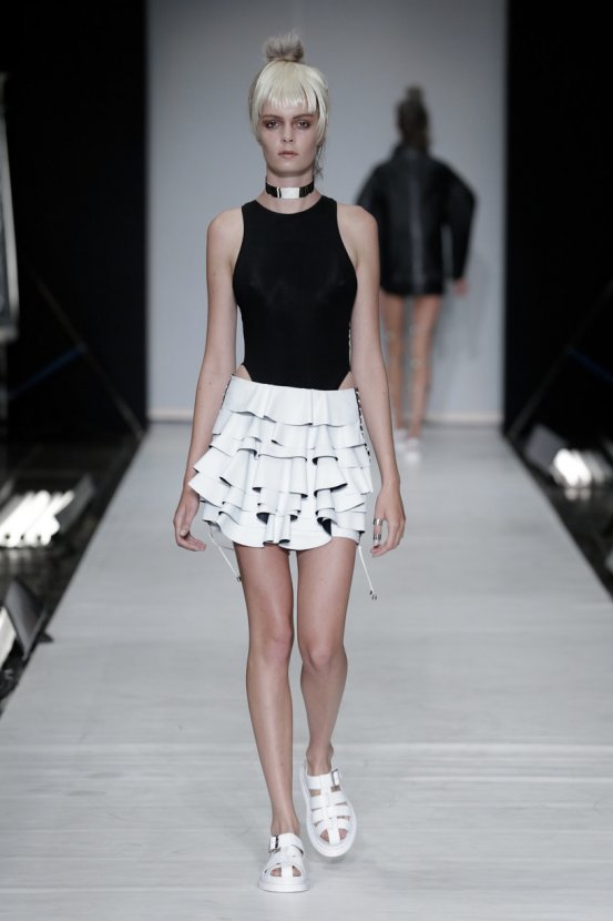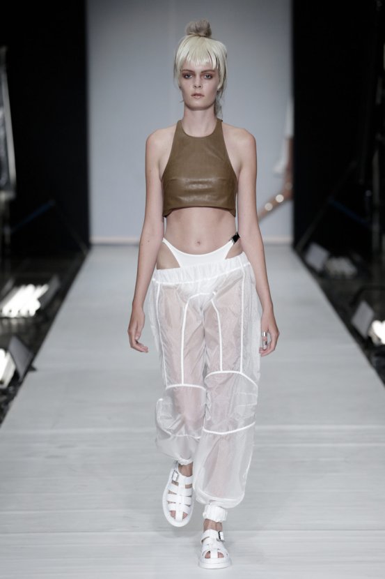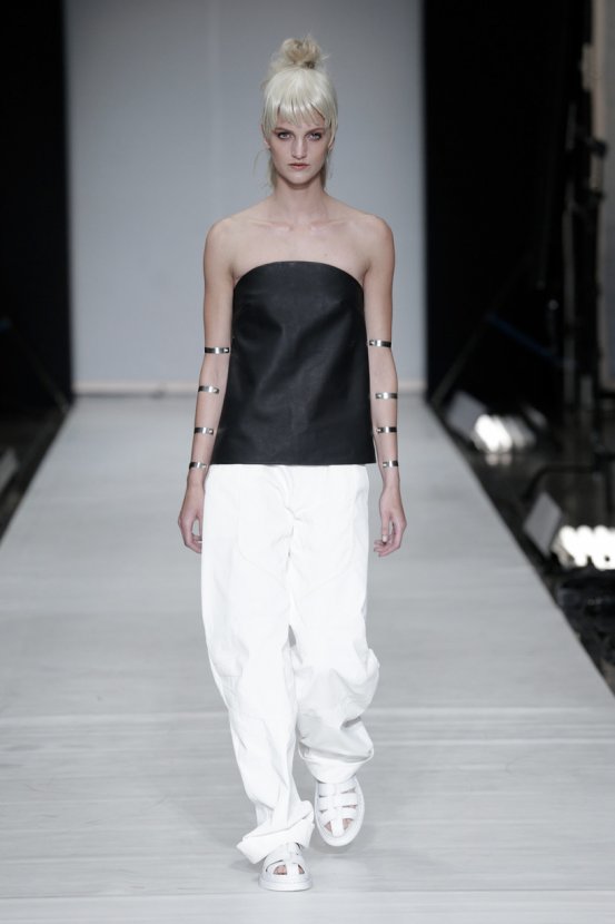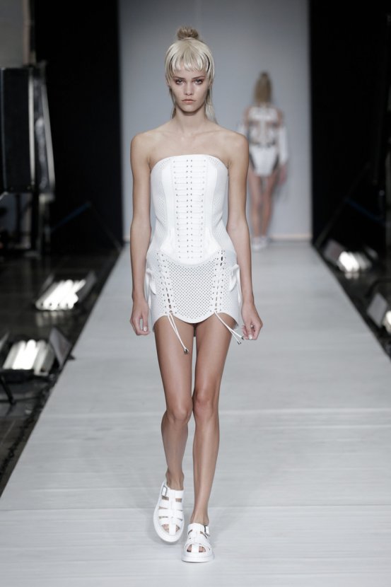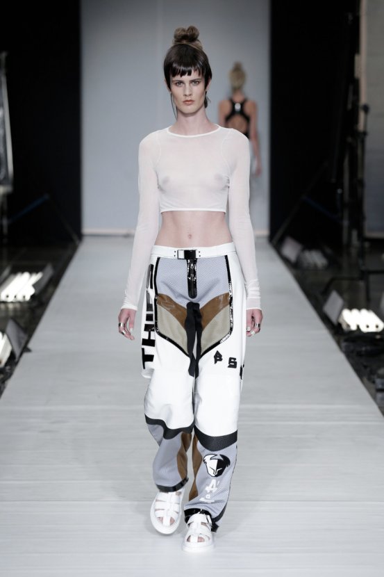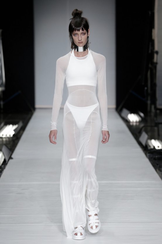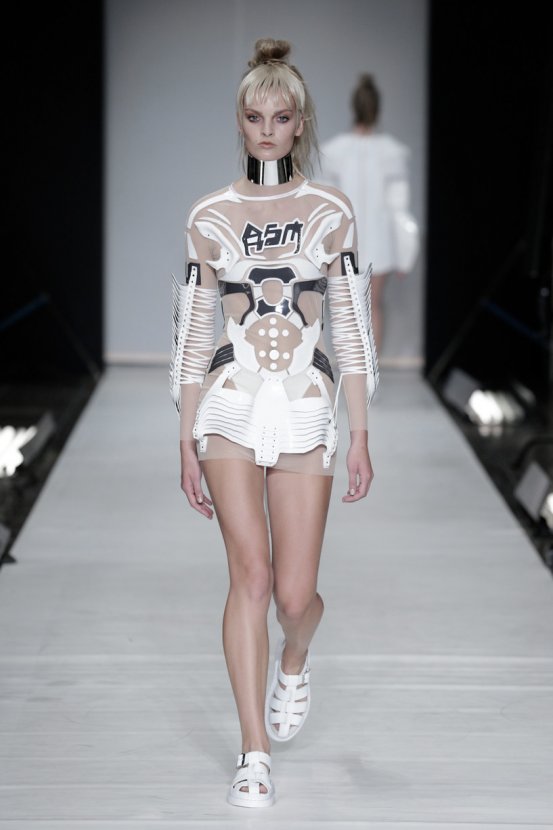 with the title “Post Human Speed” for Anne Sofie Madsen Spring collection adding a feminine and sexy futuristic look to womenswear using modern elements. This collection features pants, dresses and sweatshirts. Enjoy photos from the show below.