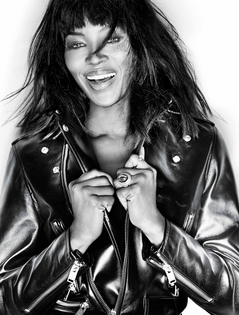Naomi Campbell slay’s leather & lace for Harper’s Bazaar Singapore. These classic elegant & edgy pieces ease you into spring with the confidence of a seasoned super model & spirit of a daredevil. Posing for a series of high resolution black and white images, Campbell finesses the January cover of Harper’s Bazaar Singapore. Sporting a covered piece from Dolce & Gabbana’s spring-summer 2014 collection, This stamps the models early major cover of 2014 where she emerges blissfully smiling ear to ear in a gold coin and floral print dress from the Italian fashion house.