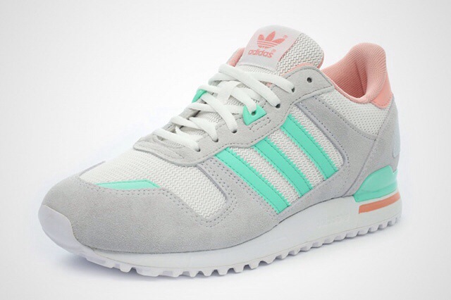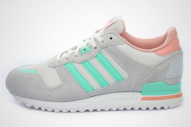 With pastel hitting the back & tongue & mint dominating the heel & 3stripes logo this pretty calm version of the classic Adidas Originals ZX 700 are making its way to the top of my favorite sneakers list, so ride on over to your local Adidas retailer and make a purchase ladies.